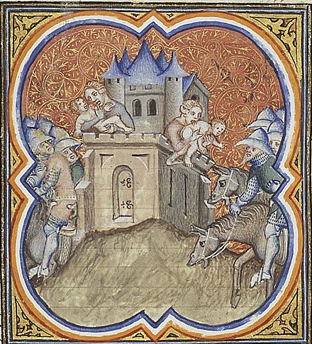 Nebuchadnezzar camp outside Jerusalem. Artist unknown but Illustration from Petrus Comestor’s ‘Bible Historiale’, France, 1372. Public Domain.